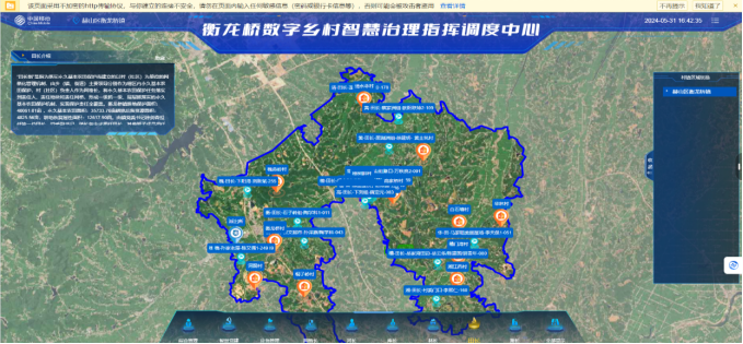 “铁塔哨兵”系统实时监测画面:江华涔天河国家湿地公园赋能数字乡村建设。益阳市赫山区衡龙桥镇加快数字乡村建设,充分运用铁塔视频监测,配置无人机开展动态巡查,同步开发手机APP,实现日常巡查、信息上报、问题摸排、核实处置等大量工作线上办理。