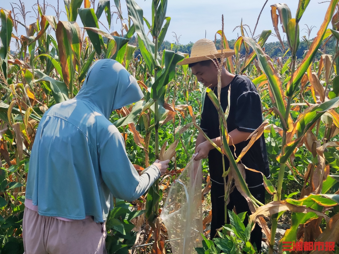 湘乡调查队正在进行大豆玉米实测工作。