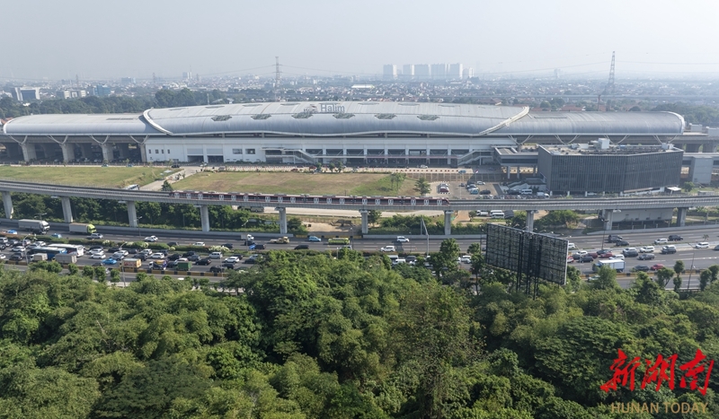 8月14日,印度尼西亚首都雅加达,一辆轻轨列车从雅万高铁哈利姆站前驶过。雅万高铁是中国高铁首次全系统、全要素、全产业链在海外的建设项目。该项目有500多台中国三一装备参与施工。湖南日报全媒体记者 辜鹏博 邹尚奇 摄影报道