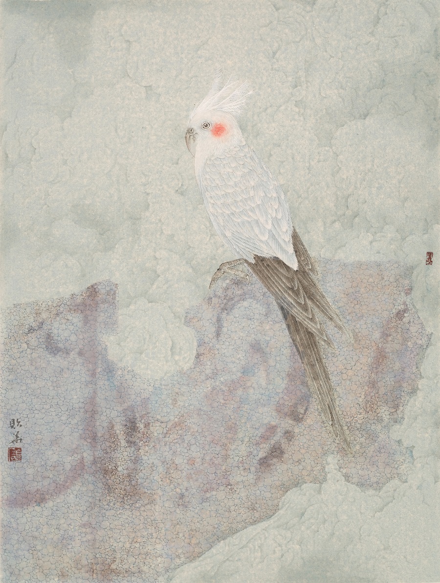 每个入世的人,其实都有一颗脱尘的心。只是大部分人只能将心灵的自由视为对岸的风景,一辈子观望却从未到达。最后怀着那份憧憬渐行渐远。 画家画下的是天地苍茫自我一人,而品赏者看到的却是千种自然万般思绪。 在我看来,姜贻华画面中精心设计的“远景” ——不管是水面还是荒原或浮云——这很重要,这代表了现实世界与理想世界的距离。通过这种“推远”,可以表达对理想生存方式的渴望,如果这种生存方式人们一旦无法企及,也可以借“推远”来表达这份挫折感,重新拾起被生活抹去的自我。对于日趋商业化、物质化,变幻莫测的荒诞世界,“推远”可以表现出某种超然的立场,不至于身不由己地被带进时代的漩涡。同时“推远”所描绘的“退隐”与“安稳”是这些现实中人们所向往的世外桃源。如此“漫长遥远”的纵深距离,传达了人内心世界的残酷真相。 艺术家的世界里,心不动,则万物不动;心灵,则万物灵。姜贻华通过丰富的内心世界赋予这一花一草一鸟一木灵动的质感。几分写物,几分描情,剩下则是留给品画者感悟的自我空间:或芬芳,或沉静,或欣悦,或怅然......都是画外人心的错综复杂。 “青鸾舞镜”“振鹭在庭”,孤独永远是一个人的孤独!哪怕载歌载舞也是一个人茕茕孑立,顾影自怜!这是人的宿命!生命悲剧的本质!艺术家的质疑、反省、思索的深度与人文关怀不言而喻!