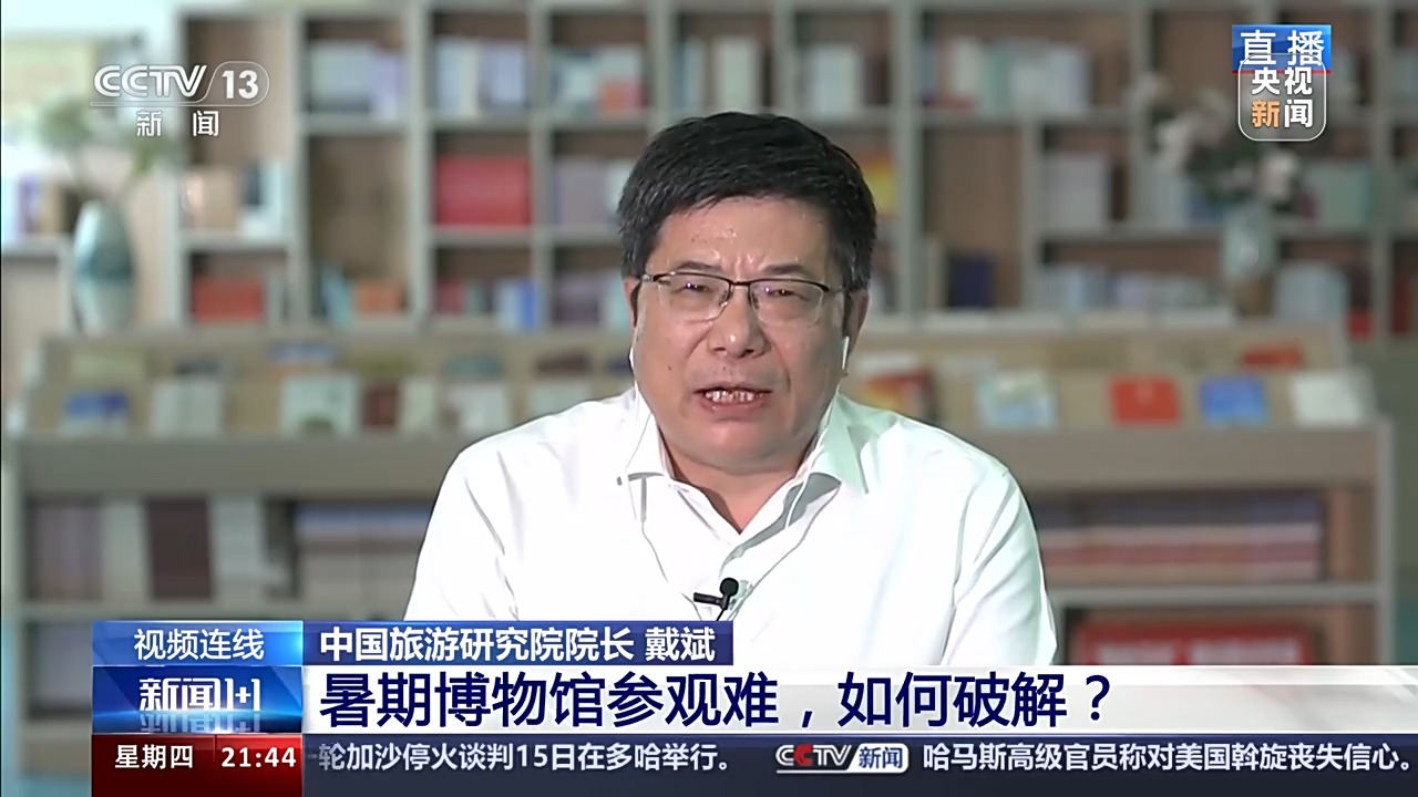 中国旅游研究院院长 戴斌:博物馆是公共文化的重要组成部分,也是文化和旅游融合以来重要的旅游场景。随着人民生活水平的提高,大家对博物馆去观展,接受相关的科普和人文教育,应该成为越来越重要的,也是越来越普遍的一个选择。在这种情况下,既有博物馆会承受一定的游客接待压力是很正常的,特别是一些热门博物馆。我们需要明确一个基本的前提,那就是在保护文物安全和游客人身安全的前提下,把最大限度方便让渡给观众和游客,这是公共文化为人民的一个重要体现。那么这个压力谁来解决?应该我们作为博物馆的供给方来解决这个问题,不能把这个压力放在游客身上,换句话说不能够因为这样那样问题,我们就把游客拒之门外,尽最大的可能让更多的观众和游客进到博物馆里来,这是我们最大的目标。