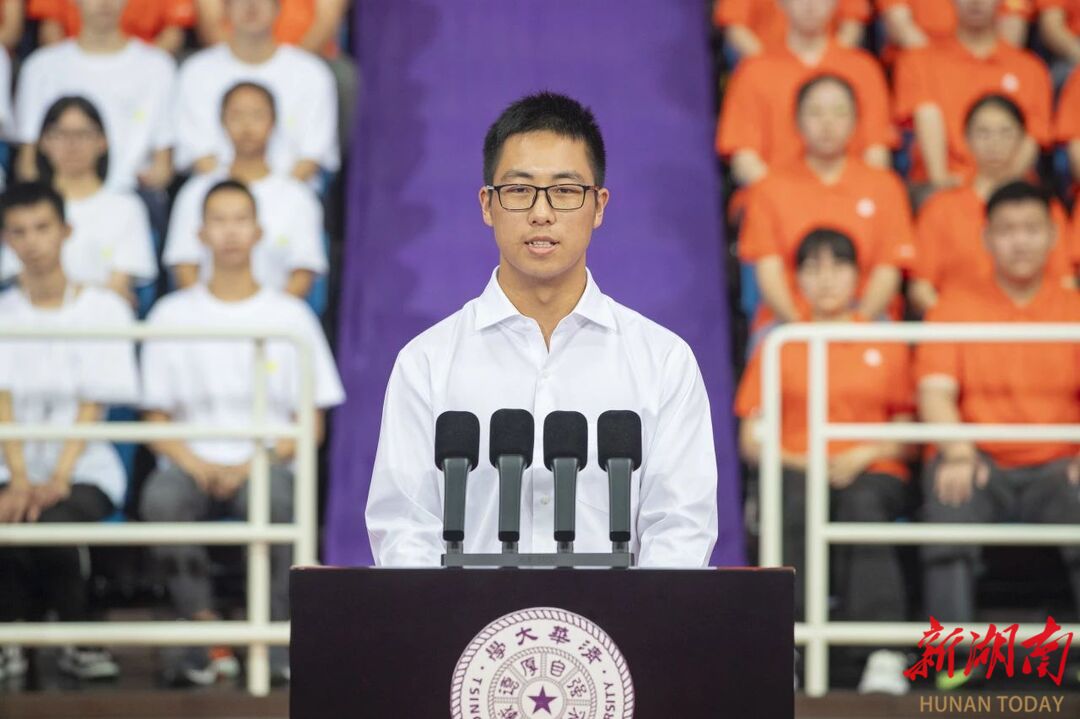 “我来自湖南省的一个小乡村,父母都是普通的工人农民……”8月15日,清华大学2024级本科生新生开学典礼上,一名身着白色衬衫,戴着黑框眼镜的少年正在台上侃侃而谈。他,是来自湖南省益阳市安化县的谌晨鑫。