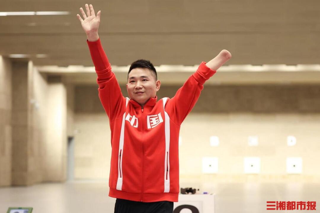 唐 千(图中),男,26岁,肢体残疾人运动员,永州祁阳人,2023年杭州亚残运会1金,首次参加残奥会。