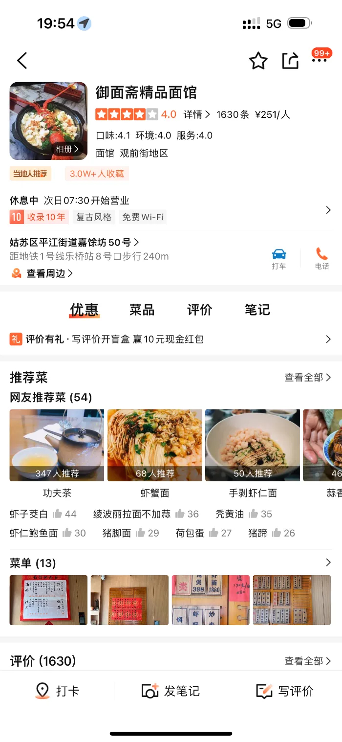 大皖新闻记者通过天眼查询发现,姑苏区御面斋精品面馆成立于2015年,以从事餐饮业为主,注册资本20万元。8月16日,记者看到,在高德地图、美团以及大众点评等APP上,均显示门店处于“休息中”,暂停开放。