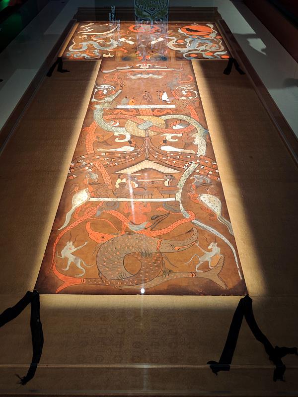 △中国迄今所见最早用织机织入吉祥语文字“安乐如意长寿无极”,马王堆汉墓3号墓出土。