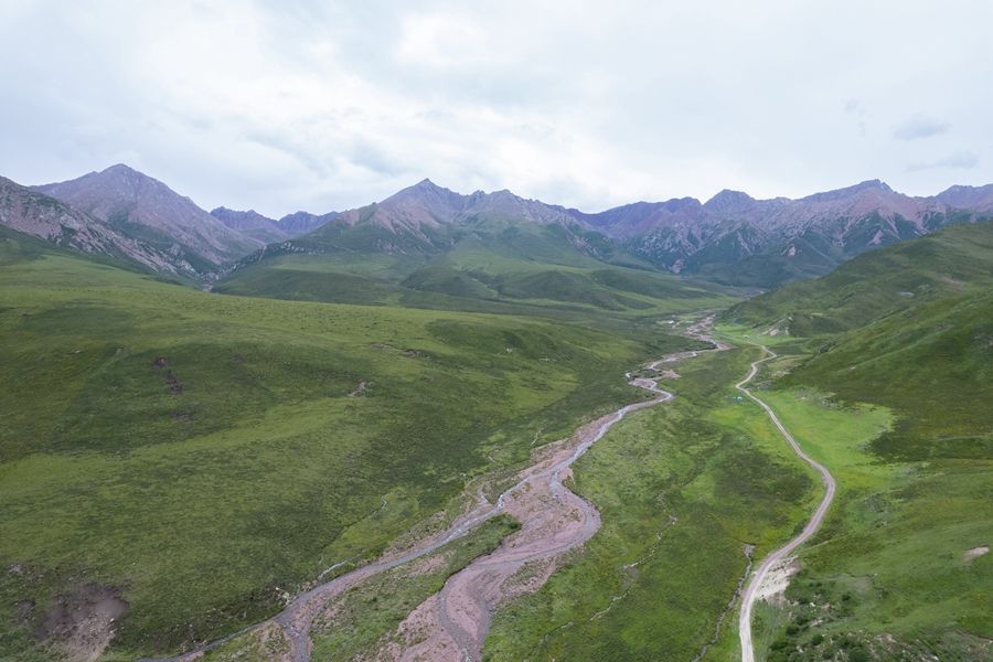 2024年7月10日在甘肃省张掖市肃南裕固族自治县皇城镇拍摄的祁连山景色(无人机照片)。新华社记者 郎兵兵 摄