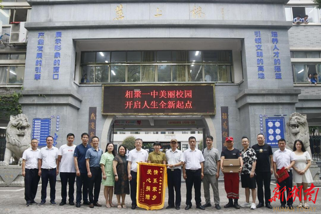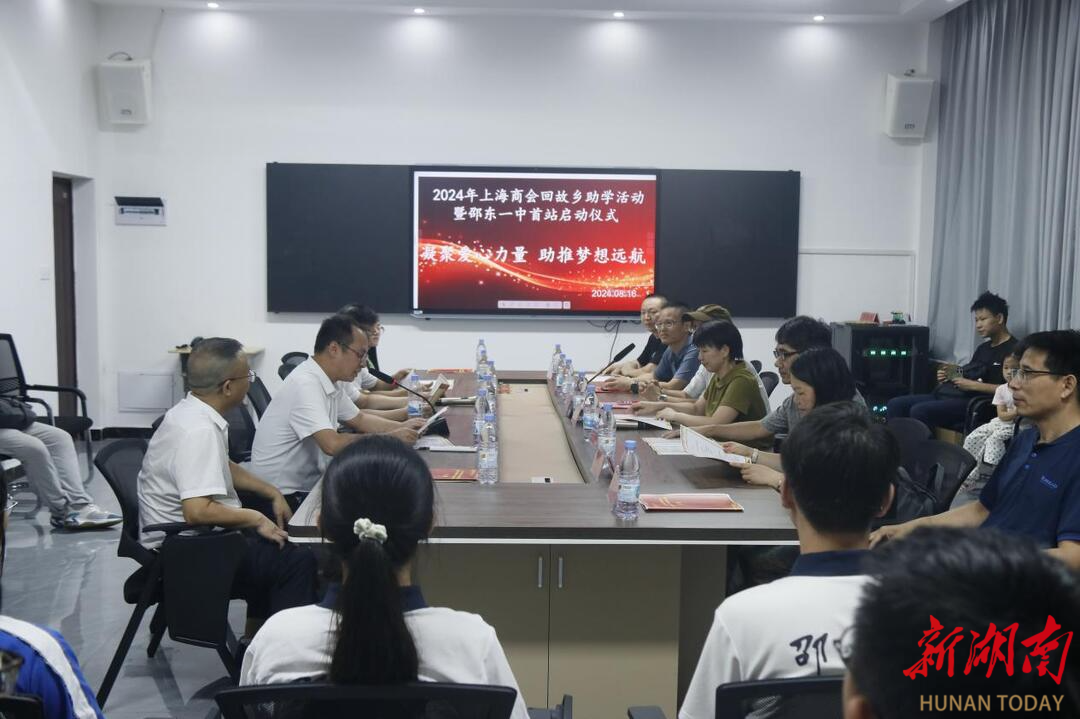 8月16日,上海邵东商会回故乡助学活动暨邵东一中首站启动仪式在邵东一中举行。该校15名成绩优异的家庭经济困难学子共收到30000元爱心款以及包含中秋月饼、电话手表在内的爱心礼盒。邵东市政协副主席、工商联主席赵俊洋、上海商会秘书长罗建林、邵东一中党委书记张剑辉、校长申立国等相关领导嘉宾参加活动。