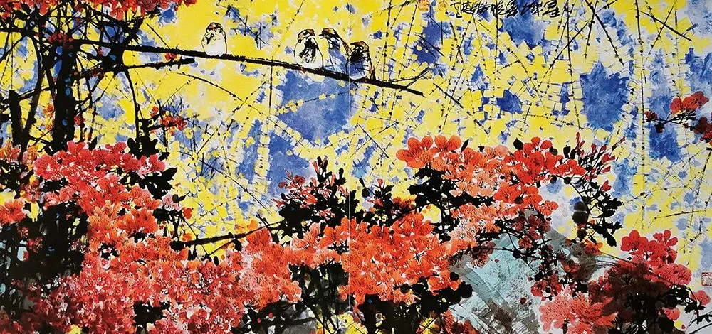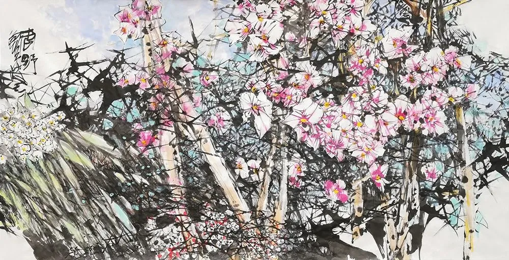 《赏花欲趁春三月》 144cm×317cm 2013 年