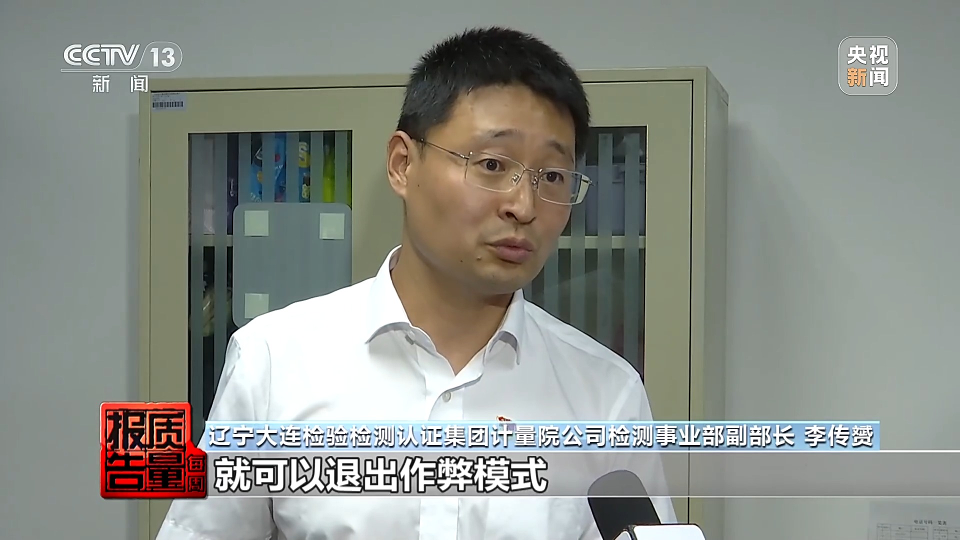 辽宁大连检验检测认证集团计量院公司检测事业部副部长李传赟:市场监管部门在执法过程中发现的一台疑似作弊秤,常见的作弊秤通过重启电源就可以退出作弊模式,但是这台秤呢有个特点,只需要按存储按键就可以退出作弊功能,在现场执法过程中,经营者只需要按存储键就可以退出作弊模式,逃避监管。