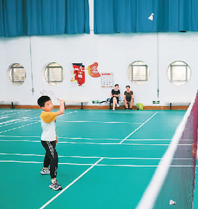 江苏省南京市多所高校体育场馆近期对外开放。图为市民在南京特殊教育师范学院羽毛球馆进行训练。徐琦摄(人民视觉)