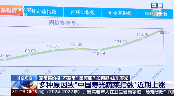 农业农村部重点监测的28种蔬菜全国批发价格数据显示,6月16日至8月15日,全国蔬菜日度价格从4.27元/公斤上升至6.01元/公斤,上涨40.7%。