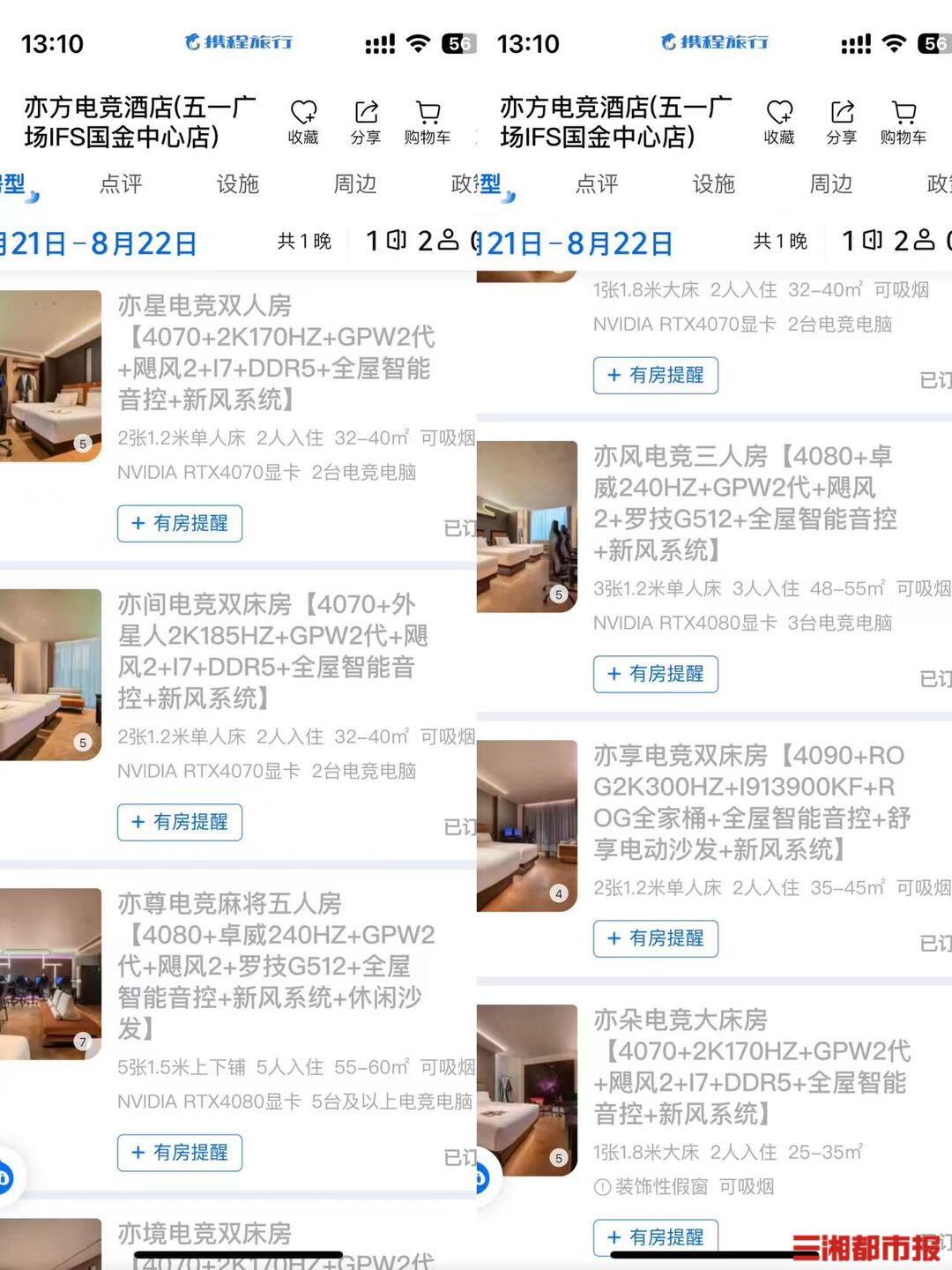 记者从携程旅行App看到,长沙不少电竞酒店的多人房型售罄。