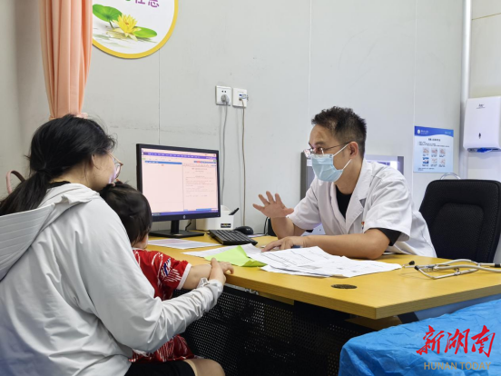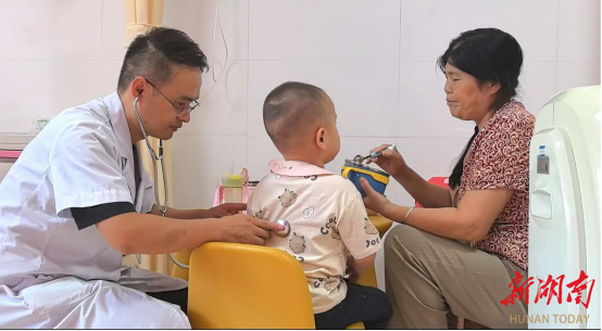 “宝贝看,叔叔手里的是什么啊?”8月22日上午,在湘西土家族苗族自治州人民医院儿童保健康复科门诊室内,副主任医师石磊正在为前来复查的小朋友进行听诊。他带着笑容,右手举着彩色卡片吸引着小朋友的注意力,左手稳稳握着听诊器。按在她的背上,全神贯注地听着心音,不时扶着小朋友,防止她从诊床跌落。