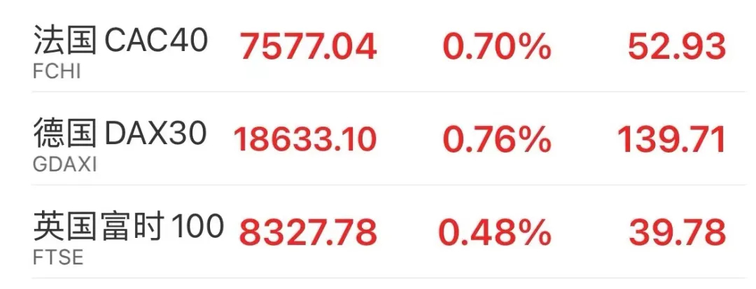 标普500指数中的所有主要板块均上涨。MSCI全球指数盘中创下历史新高。罗素2000小型公司指数上涨3.19%。比特币大涨超4%,现报64400美元/枚。欧洲三大股指收盘普涨,德国DAX30指数涨0.76%至18633.10点,本周涨1.70%;法国CAC40指数涨0.70%至7577.04点,本周涨1.71%;英国富时100指数涨0.48%至8327.78点,本周涨0.20%。