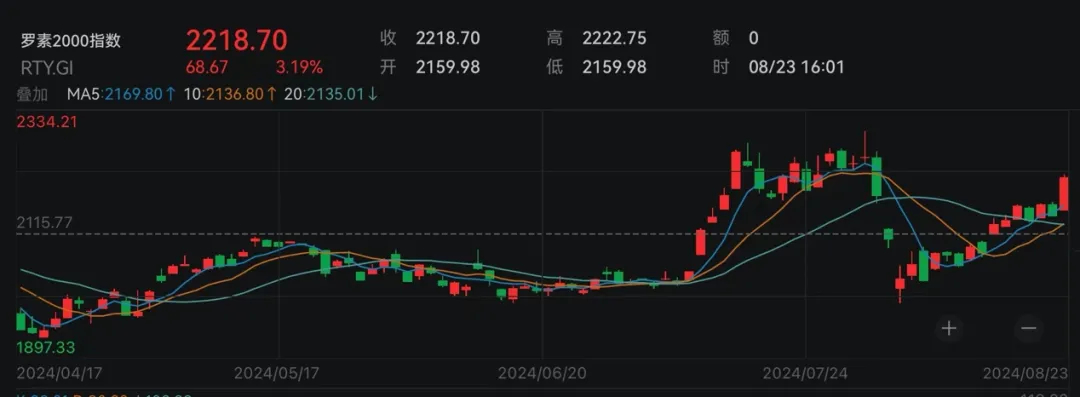 当地时间8月23日周五,美股三大股指集体收涨。截至收盘,道指涨1.14%,纳指涨1.47%,标普500指数涨1.15%。