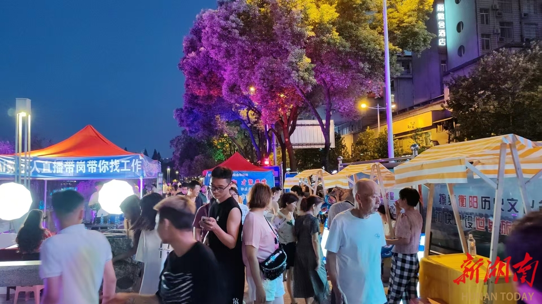 湖南日报·新湖南客户端8月24日讯(记者 曾愉捷)8月23日晚,雁峰区解放路河畔在霓虹灯的映照下熠熠生辉,河水波光粼粼,一场充满活力与创新的“人才夜市”火热举行。