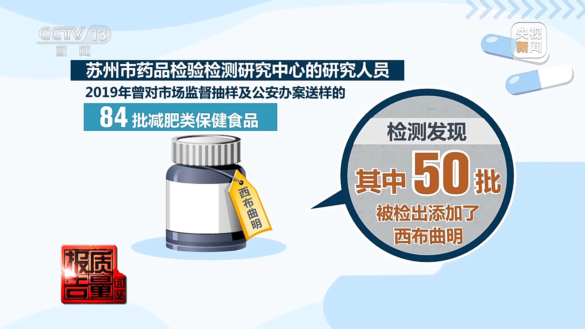 苏州市药品检验检测研究中心的研究人员2019年曾对市场监督抽样及公安办案送样的84批减肥类保健食品检测发现,其中50批被检出添加了西布曲明。