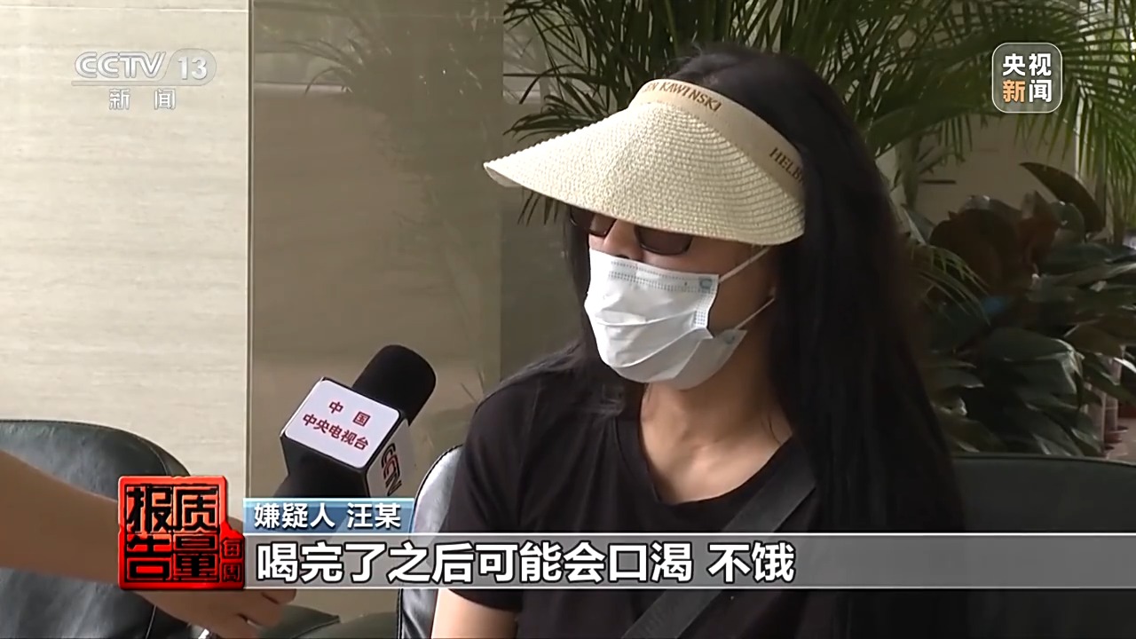 嫌疑人 汪某:喝完之后可能会口渴、不饿、有点恶心。但是上面拿货的人,他跟我说这个属于正常,你就跟客户说多喝点水,三到四十分钟之后让他吃点东西就会过去。