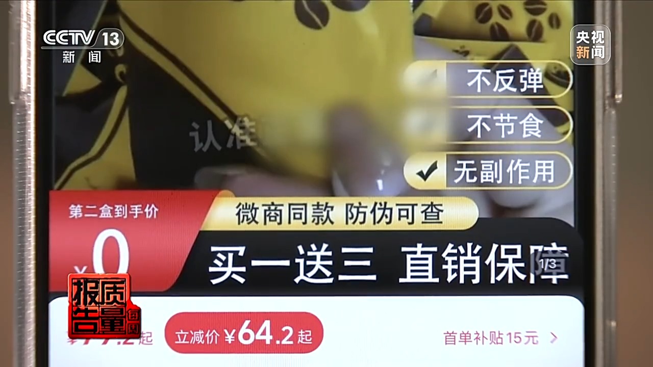 消费者 陈女士:他们推荐的减肥药就是一天吃一粒,基本上吃一个月可以瘦10斤,也是想试试,然后就下单买了20几粒,花了大概200多元钱。