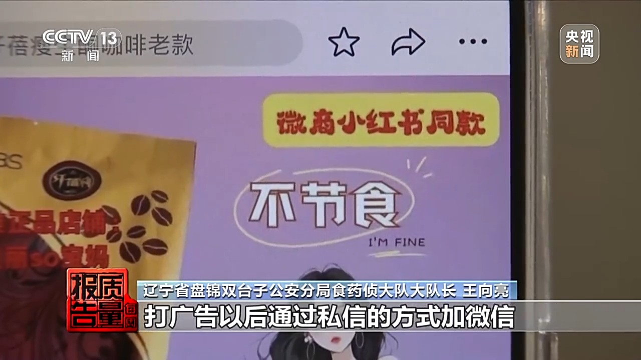 据辽宁警方介绍,这款非法减肥咖啡以网络分销代理为主要销售模式,通过终端代理商在各自的社交媒体账号进行推广,吸引了大量消费者购买。诸如“不反弹不节食无副作用”“微商小红书同款”等宣传语极具诱惑性。