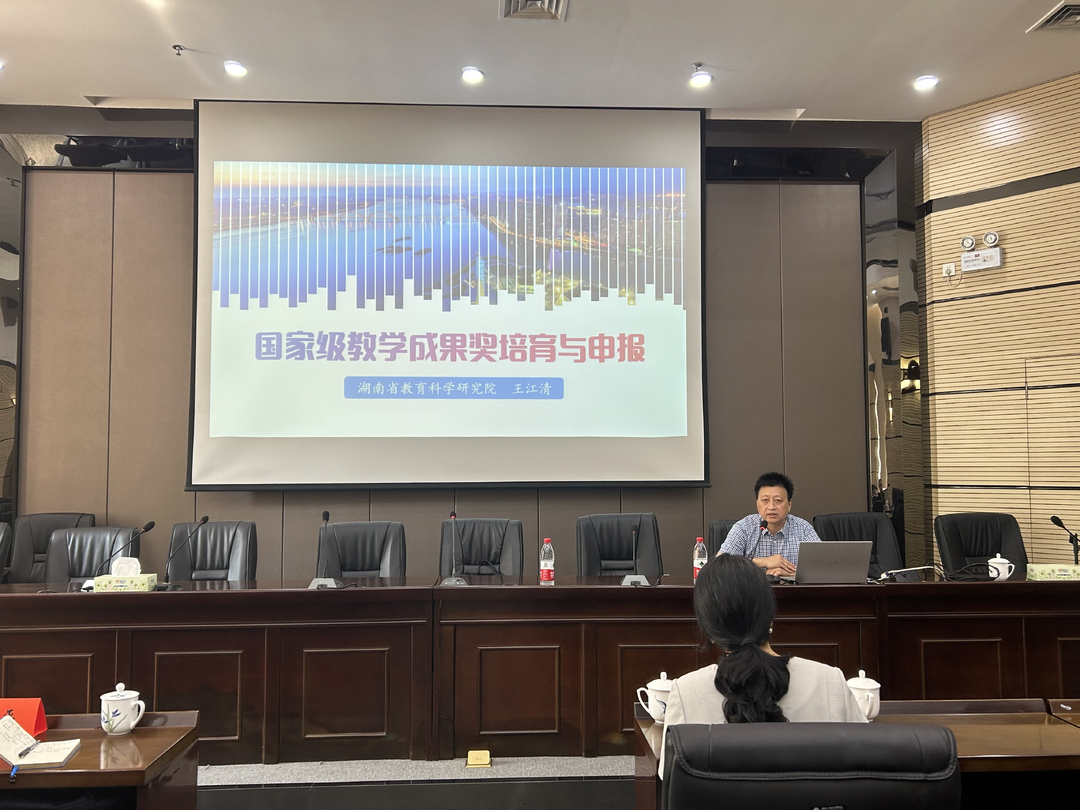 湖南日报·新湖南客户端8月26日讯(通讯员 王桂英)为进一步培育和凝练教学成果,提升学校教学成果奖的申报质量,近日,湖南化工职业技术学院科研产业处举办教学成果奖申报专题培训会议。本次培训特邀湖南省教育科学研究院副院长王江清教授主讲。该校校长隆平、副校长刘艳以及申报校级教学成果项目负责人等60余人参加培训。