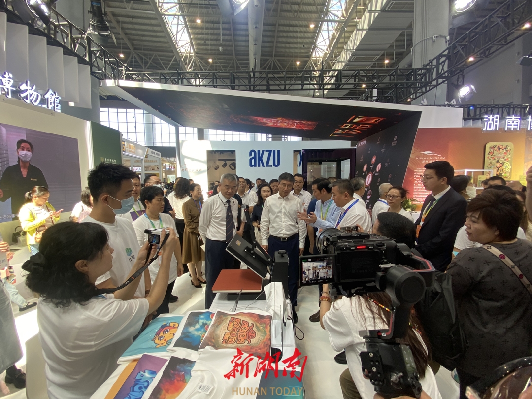 本届博博会湖南共有16家文博单位参与,以“文化铸魂·科技赋能”为主题,分为综合馆、红色馆、专题馆三大展区,重点展示各馆在学术研究、公众教育、文创开发、数字博物馆等方面的建设情况,集中呈现“文化+科技”“文化+旅游”深度融合发展的最新成绩。