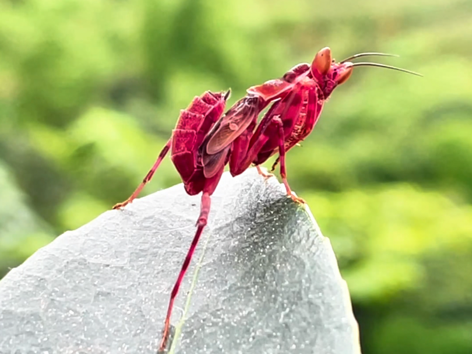 罕见的小可爱!红色眼斑螳螂现身云南宁洱