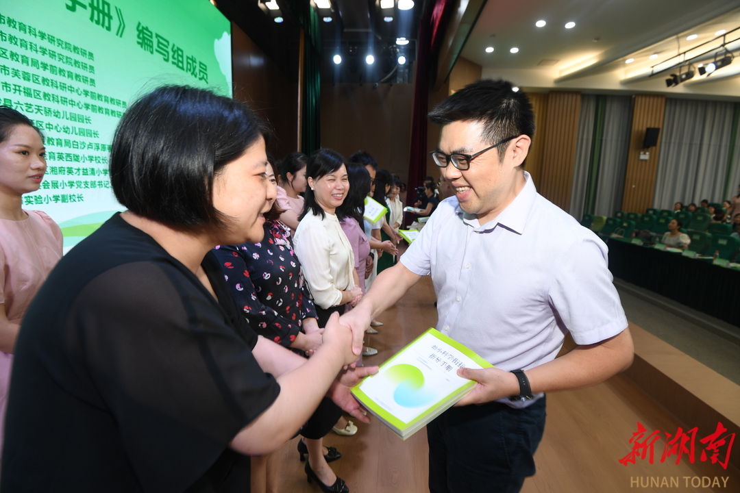 活动现场,湖南省教育科学研究院副院长杨敏、长沙市教育科学研究院院长黄军山、长沙市教育局基础教育处处长周小青、湖南少年儿童出版社总经理胡隽宓向编写团队及长沙各区县(市)教育局赠送了《指导手册》。