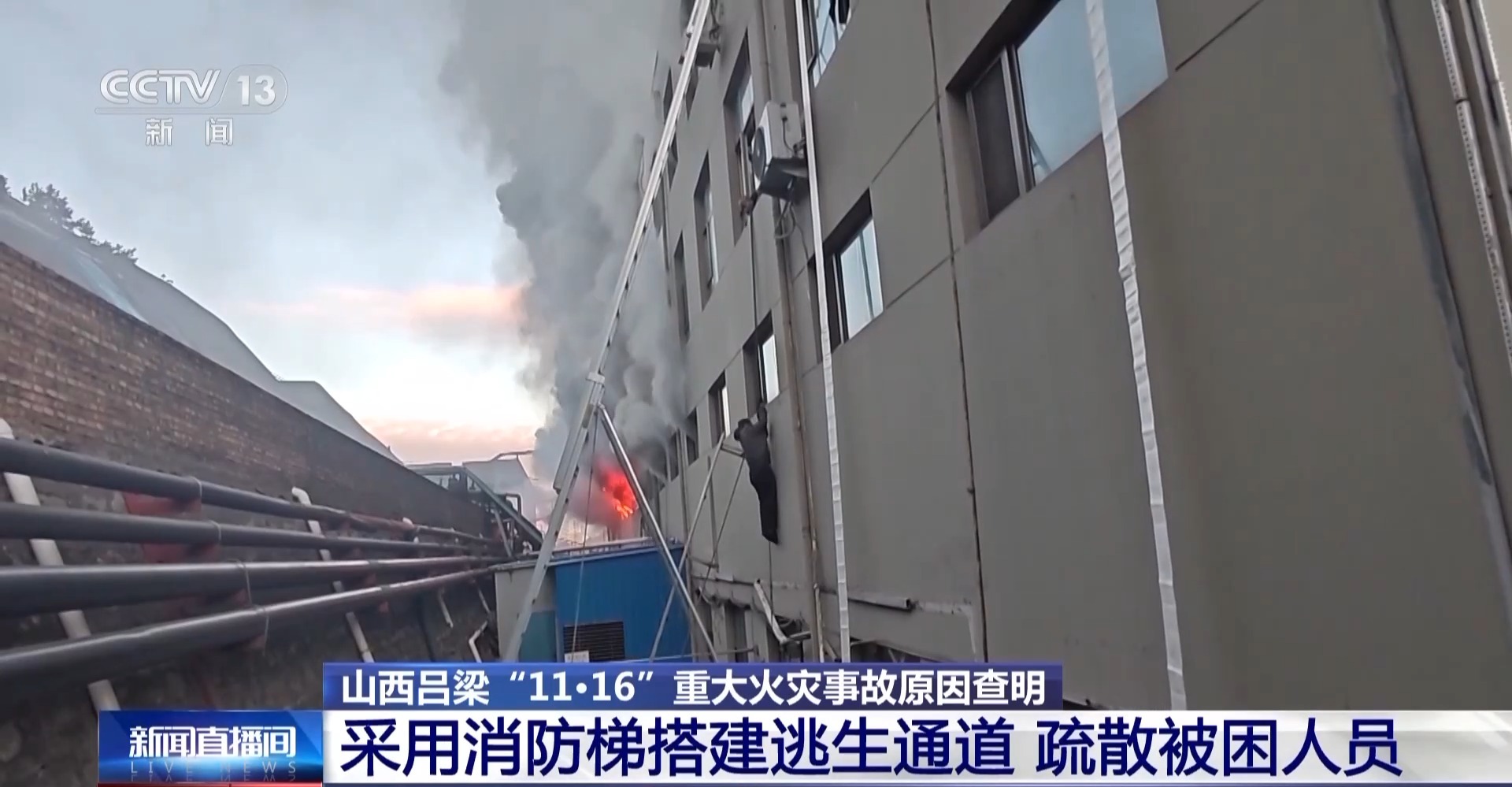 2023年11月16日早上6点半,山西省吕梁市离石区永聚煤业联建楼发生火灾,消防员接到报警后迅速赶赴现场展开灭火救人。在联建楼前面,消防员利用高喷车、水炮从外部压制火势,同时,组织精干力量进入内部进行灭火救人。通过联建楼三楼外窗可以看到,有大量被困人员聚集在临窗附近等待救援,消防员立即用消防梯搭建逃生通道。