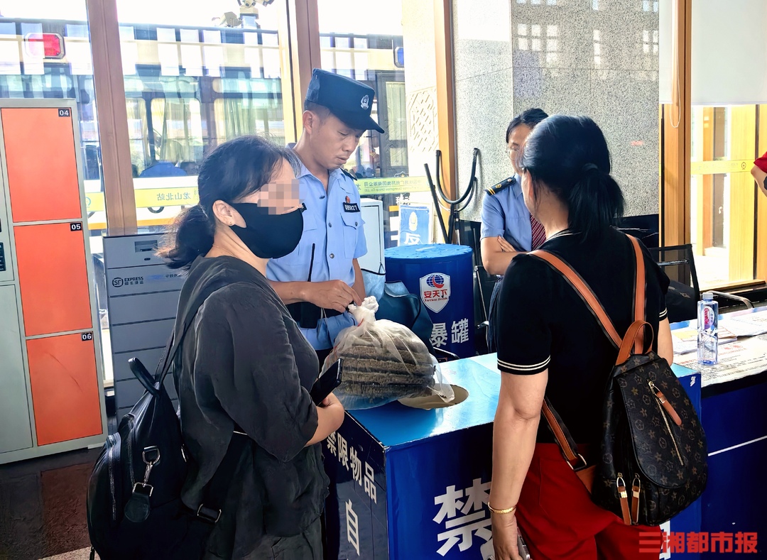 三湘都市报·新湖南客户端8月29日讯(文/视频 全媒体记者 王智芳 通讯员 叶妍 何樟龙 柳雅)8月29日,湘西土家族苗族自治州龙山北站安检员从一名旅客行李中查获马蜂窝,密密麻麻的活马蜂还在爬行。为了旅行安全,携带者当即被车站民警拦下。