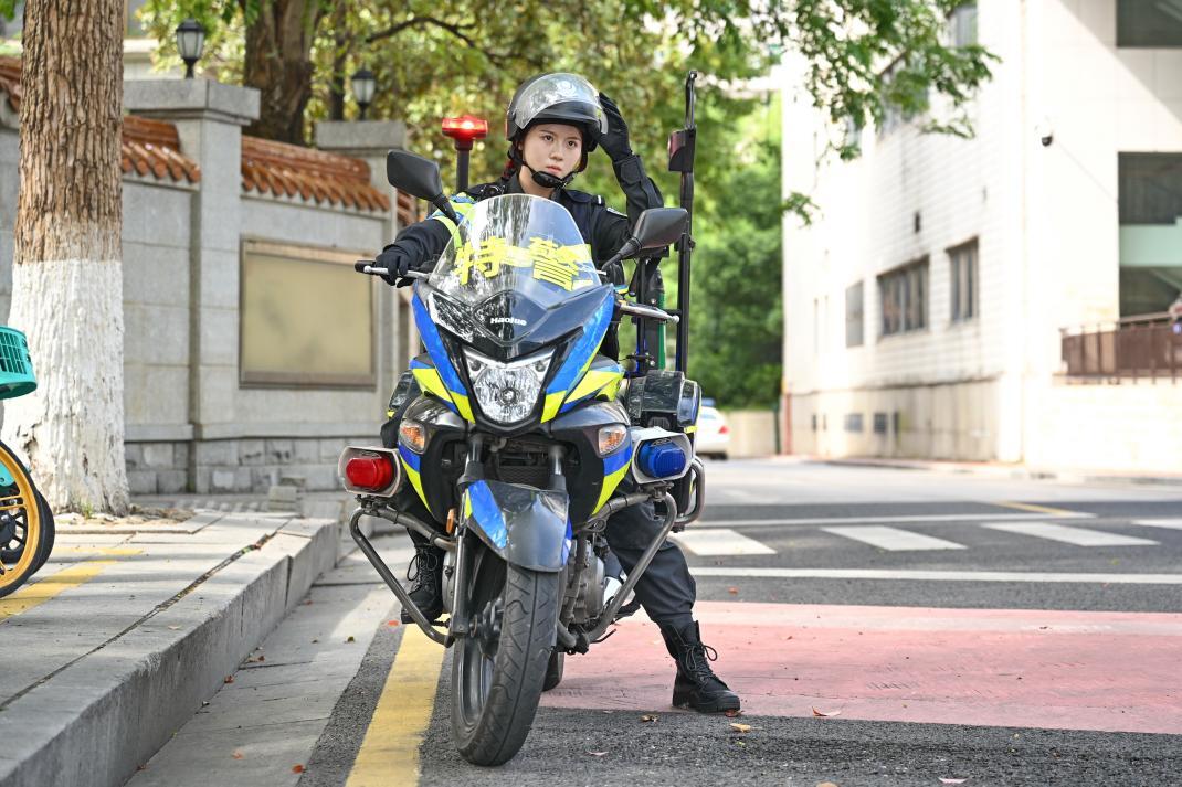 (邹诗月在进行“铁骑巡逻”。湖南日报·新湖南客户端记者 童迪 摄)