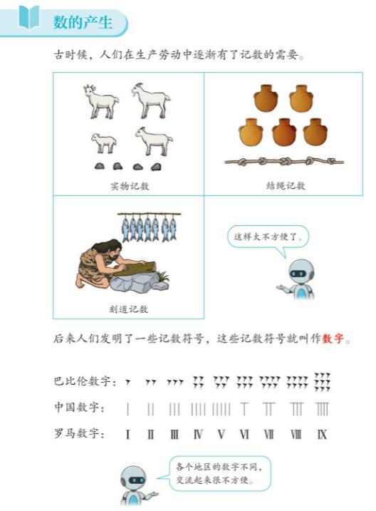人民教育出版社小学四年级上册数学教材中对罗马数字的介绍。