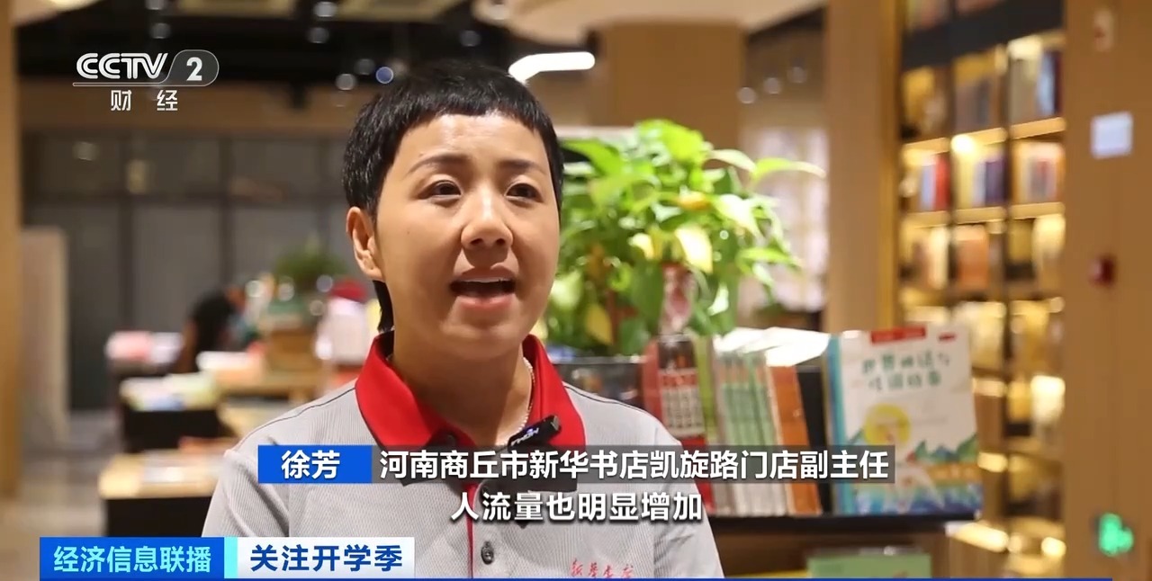 河南商丘市新华书店凯旋路门店副主任 徐芳:人流量明显增加,每天到店一千余人。为了迎接开学季,我们提前和出版社联系,备好了充足的货源。