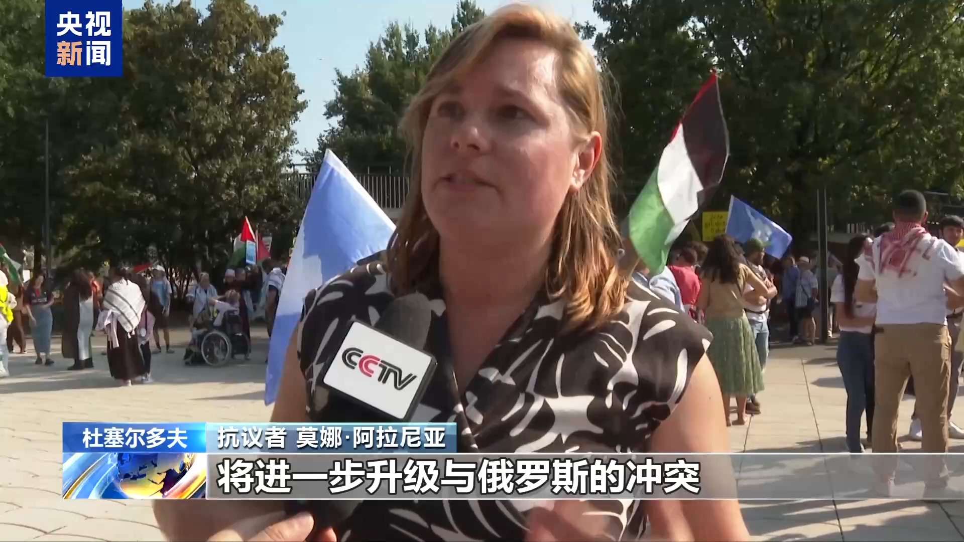 总台记者 余鹏:我身后的抗议者们此刻正通过和平的方式,传达他们对全球局势的深切关切,特别是对于当前欧洲和全球紧张局势的担忧。值得注意的是,这次游行不仅是一场反战行动,还是一次对国际社会的呼吁,呼吁各国领导人通过对话和外交手段解决冲突。