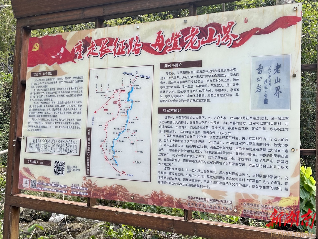 老山界带动了舜皇山国家森林公园的旅游业,舜皇山国家森林公园带动了当地的旅游业。东安潇湘红色文化有限公司从2012年开始经营舜皇山国家森林公园。该公司经理颜春平说,旺季时能为100多名当地村民提供各种就业岗位。此外,村民们还在景区内外开了10多家农家乐。