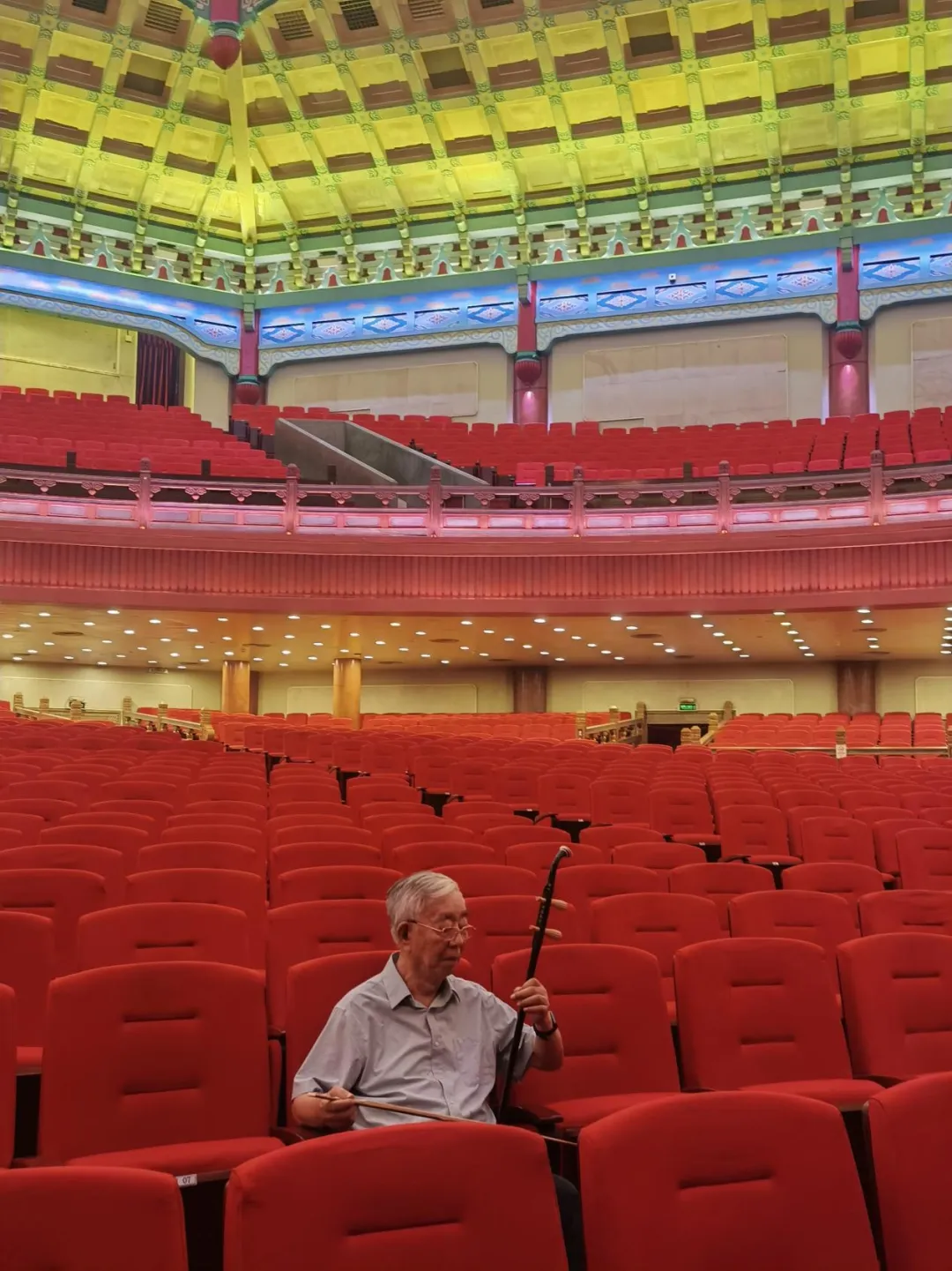 8月29号下午,许镜清在广州中山纪念堂,说到接下来可能会有的一场新的音乐会。纵深七十多米、能容纳五千名观众的大厅里,82岁的许镜清独自坐在一张红色的座椅上。他能听见自己的呼吸,也能听见云宫的声音。