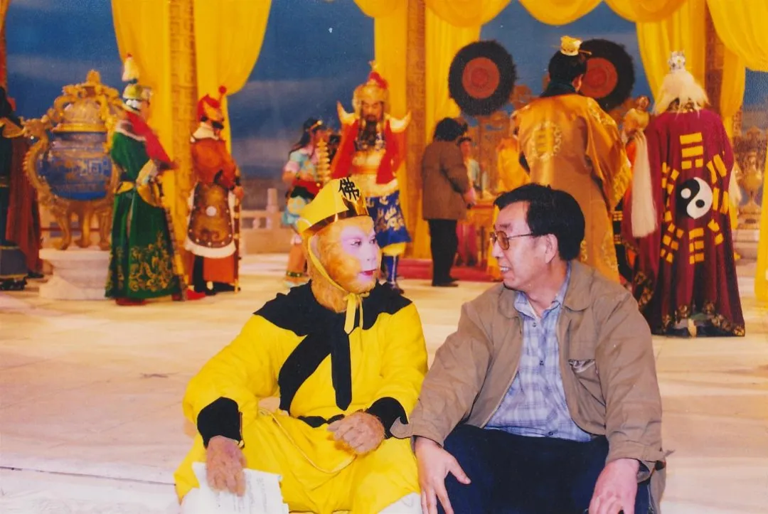 许镜清与孙悟空的扮演者六小龄童在拍摄现场