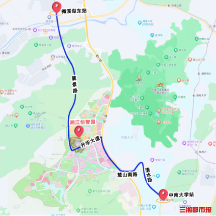 记者了解到,在2024年底园区正式亮相之前,交通条件的便利性也将被进一步提升。已经开通的麓景路贯穿南北,往北通过麓景路隧道即达梅溪湖,往南直达含浦;贯穿东西的升华大道(麓景路—西二环西辅道段),预计在年底将完工通车,实现与高校“无缝衔接”。未来,该园区东侧规划有地铁13号线站点;同时,年底开园后计划开通一条接驳线路连接地铁2号线梅溪湖东站、湘江创智园与地铁3号线中南大学站。