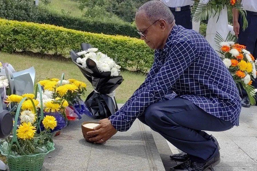 2023年6月,在中国湖南省长沙市唐人万寿园内,“杂交水稻之父”袁隆平的墓前,马达加斯加农业部原秘书长拉库托松·菲利贝尔不远万里带来了一份承载着真诚谢意的礼物——产自非洲的杂交水稻大米。