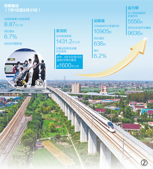数据显示,暑运期间全国铁路日均发送旅客1431.2万人次,创暑运旅客发送量历史新高。其中,8月10日至12日连续3天单日客流超1600万人次。
