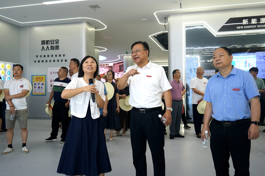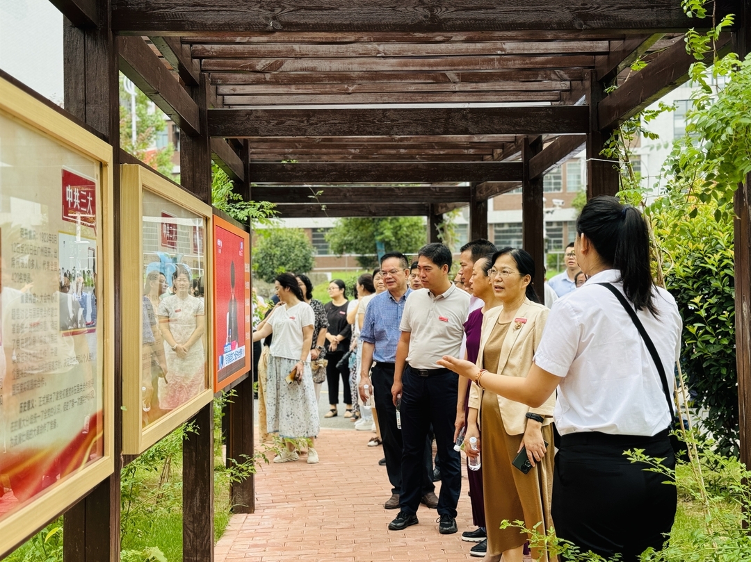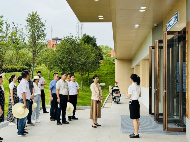 在图书档案馆区域,考察团一行先后察看了喷泉、校史馆、图书馆、大数据中心,详细了解喷泉调试、学校六十余年的办学历程、图书馆及大数据中心运营等情况。在精艺楼,考察团沉浸式体验了啤酒车间灌装系统、化工数字博物馆,感悟了化工类、食品类专业背后的文化内涵。在食堂宿舍区域,考察团先后察看了食堂加装电梯项目、宿舍提质改造工程、一站式社区服务中心、二食堂二楼改造项目,体验了校园里新增的便捷服务。在党建公园,考察团聆听了行走的党史思政课堂,了解了湖湘革命名人故事、近距离感受了化院清廉文化,并重温了入党誓词。考察团还来到田径场、樱花公园、创新创新中心、紫薇大道、主题雕塑等,了解施工进度、设计理念等情况。