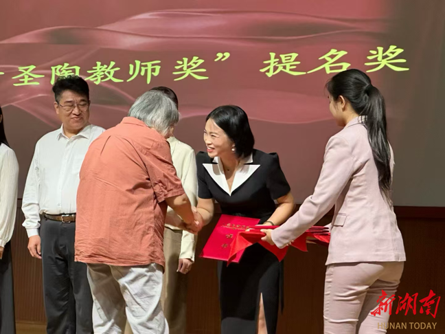 据了解,民进中央从2023年设立首届“叶圣陶教师奖”,意在传扬教书育人的优秀事迹,旨在全会树立一批教师楷模,激发广大教师会员的工作热情,扩大民进在教育领域的影响。首届评送十名“叶圣陶教师奖”,第二届增加十名“叶圣陶教师奖“提名奖。新化教育名师谭铭容喜获“叶圣陶教师奖’提名奖,是湖南省唯一获此殊荣的教师。