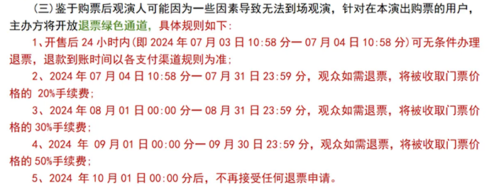 2024年10月19日北京某演唱会退票规则截图