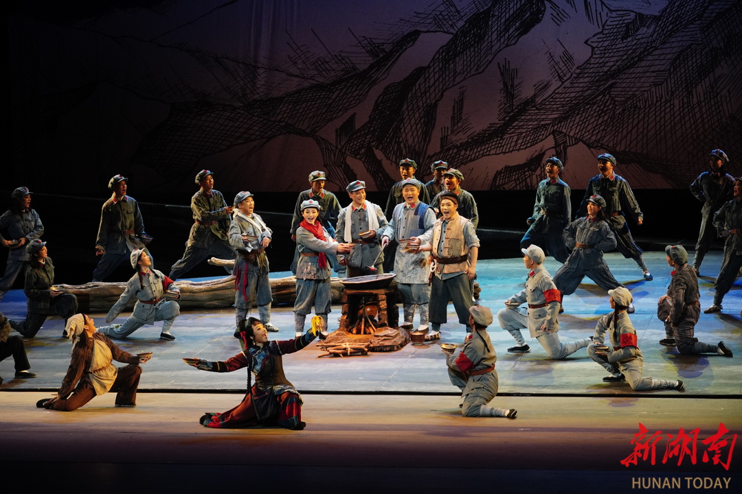 《一担银元》以祁阳籍开国将领周玉成长征时带着一担银元爬雪山、过草地,保障部队供应的故事为蓝本,整部剧分为“临危受命”“雪映红星”“舍身试毒”“肝胆欲裂”“走向光明”等九幕。展现出一段波澜壮阔的历史。在继承传统祁剧精髓的基础上,编创团队大胆探索和实践新的艺术表现手法。