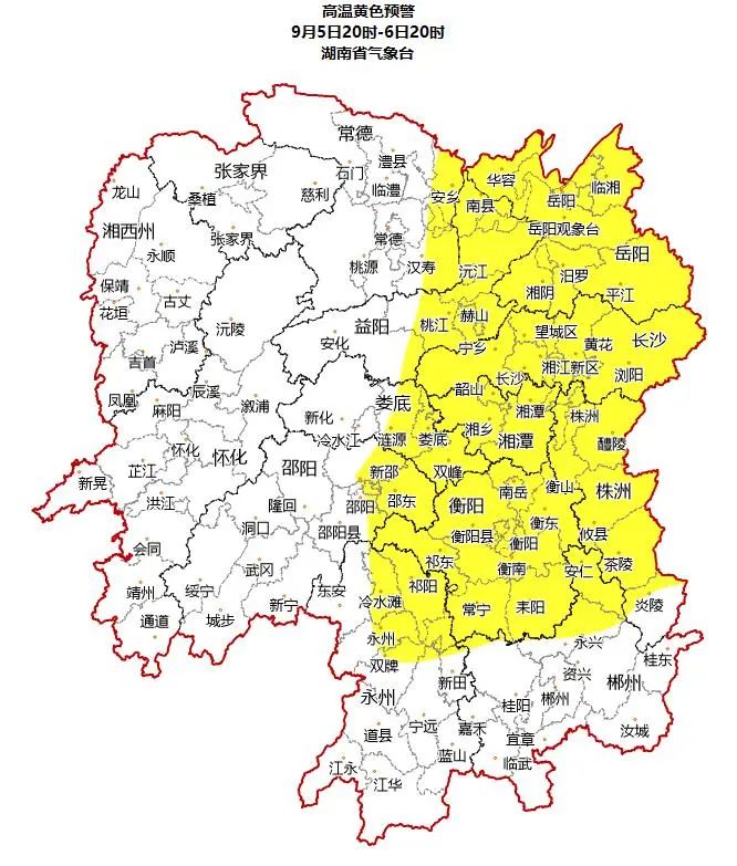 湖南省气象台9月5日16时发布高温黄色预警: