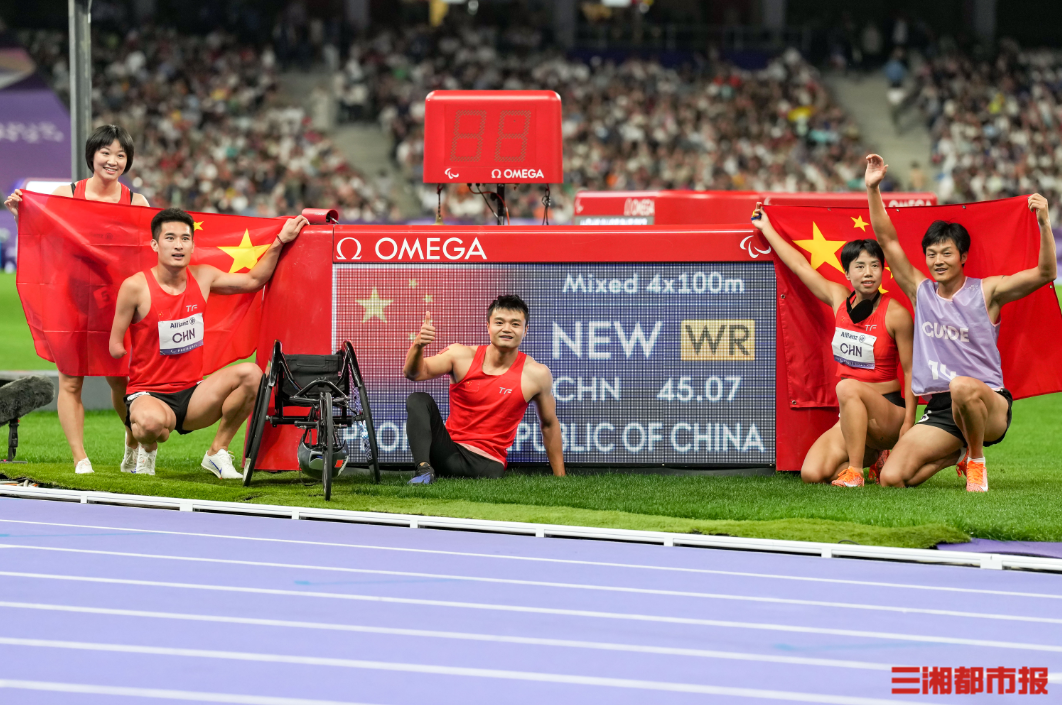 北京时间9月7日2时58分,在巴黎残奥会田径项目4X100米混合接力决赛中,由周国华和领跑员贾登璞、王浩、文晓燕、胡洋组成的中国队,以45秒07的成绩夺金,并打破该项目的世界纪录。这是湖南运动员文晓燕本次残奥会的第四块金牌,实现了她个人参赛项目的大丰收。