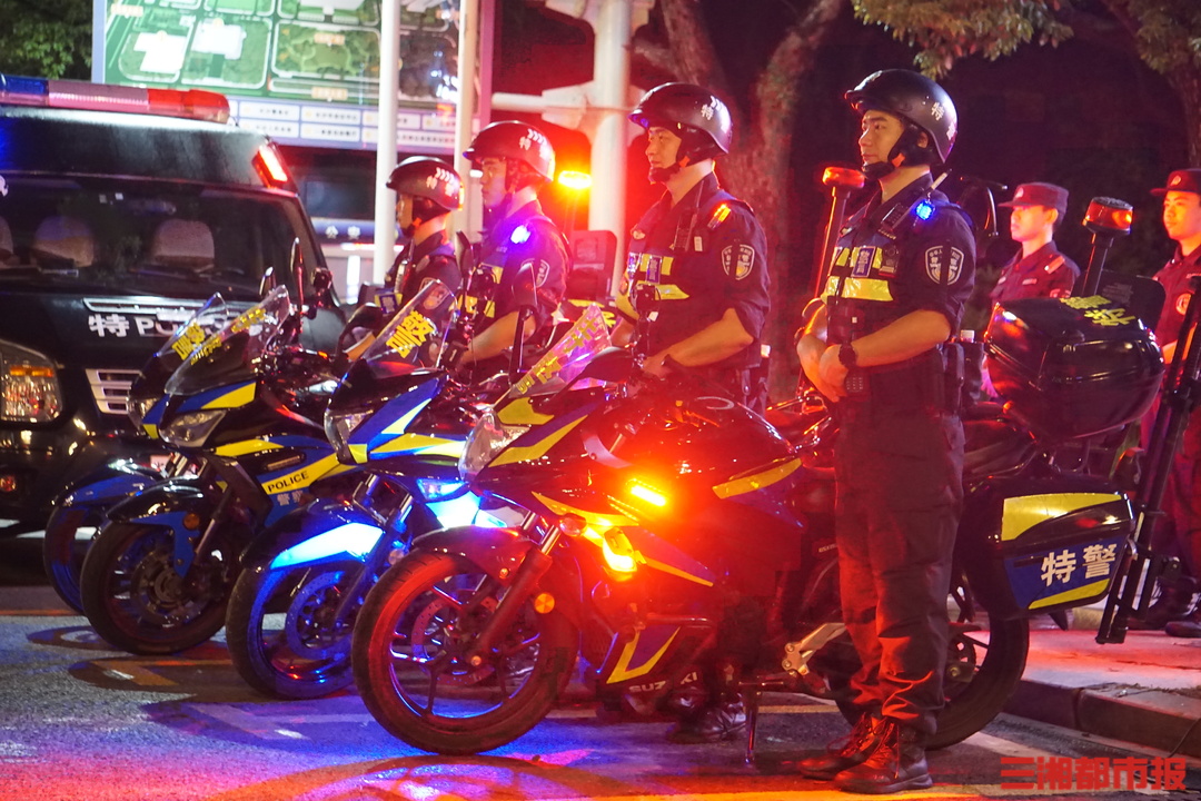 “行动开始,出发!”一声令下,长沙市公安局特巡警支队第四特警大队的铁骑队员们迅速集结,整装待发。9月7日19时30分,长沙各集结地警灯闪烁,民警的身影在夜色中穿梭,全市各级公安机关出动警力1.5万人守护城市平安。