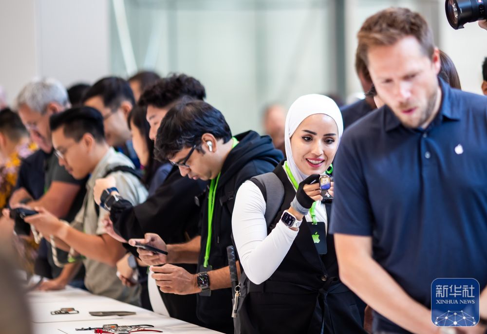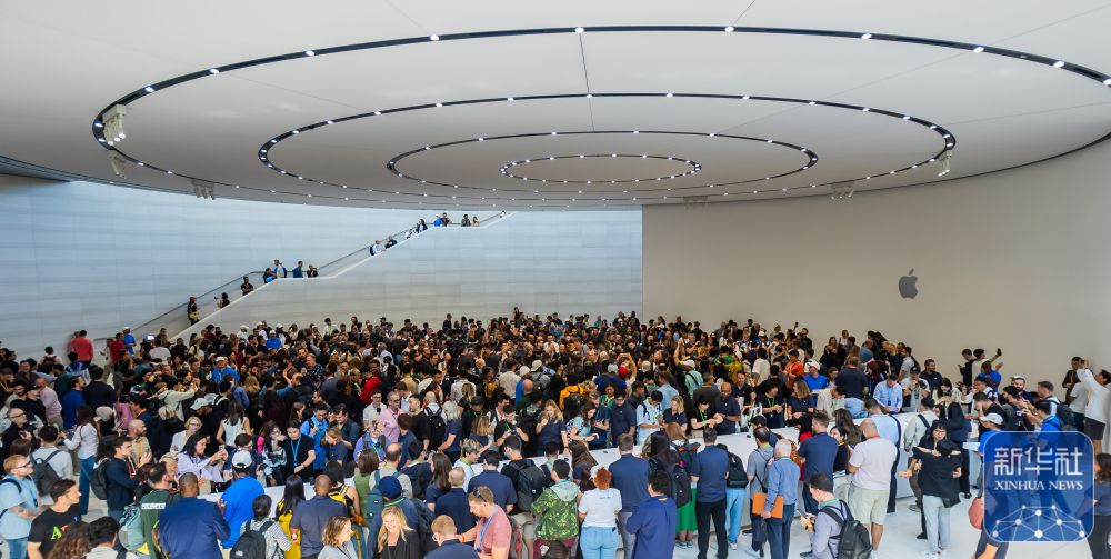 ↓9月9日,在美国加利福尼亚州丘珀蒂诺市举行的苹果新品发布会后,人们体验新品。