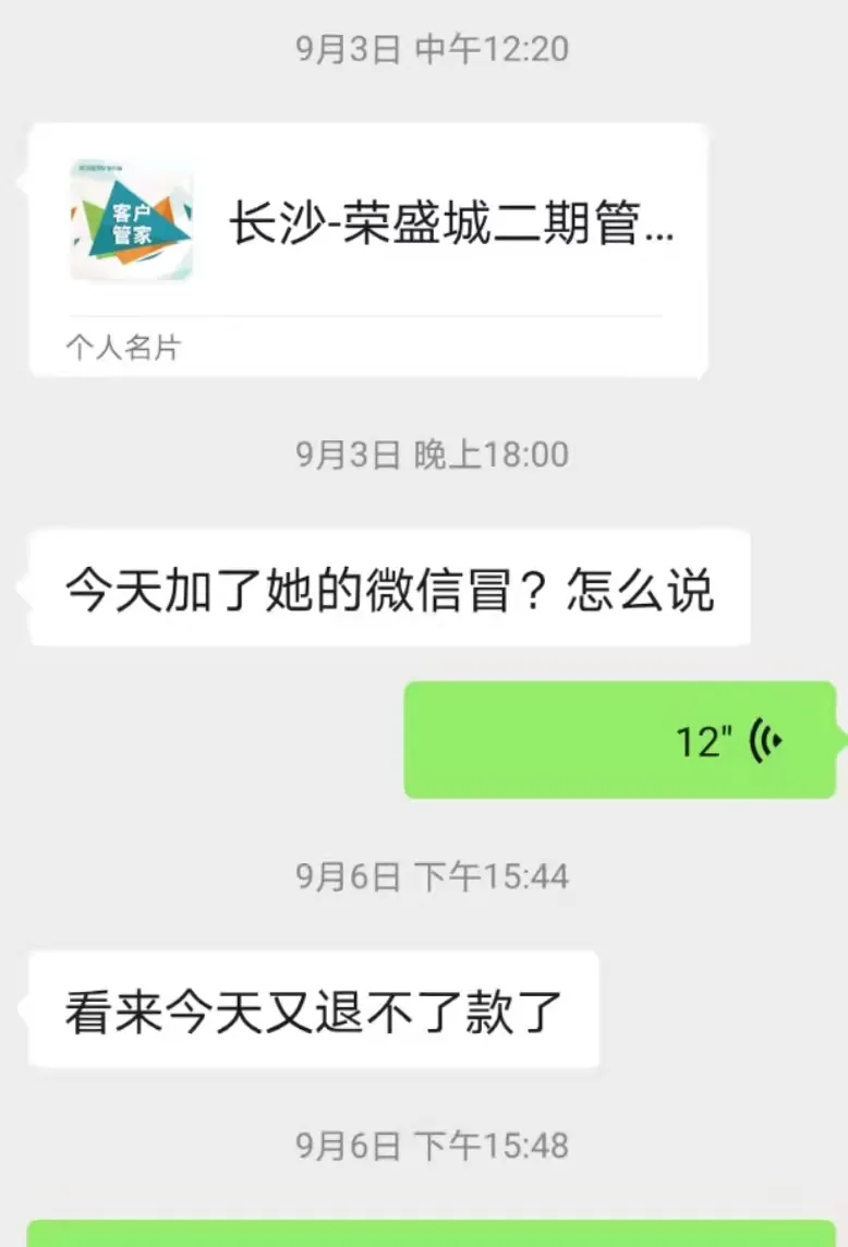 “看来今天又退不了款了”9月6日下午,王先生告诉记者,对方没能兑现承诺。记者随后再次致电物业工作人员,其表示相关退款手续已经办好,会在下周二(9月10日)退款,会立即和王先生沟通协调。