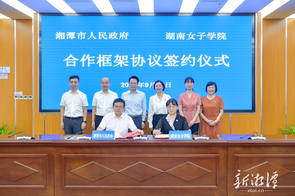 湖南日报·新湖南客户端9月11日讯(李容容)9月10日,湘潭市人民政府与湖南女子学院举行合作框架协议签约仪式。湖南女子学院党委书记段美娟,党委副书记、校长何旭娟,湘潭市委书记胡贺波共同见证签约。湖南女子学院党委副书记贺江平,副校长石潇纯,党委委员、副校长莫文斌、周艳红、李凯辉,市领导刘新华、丁诚、伍浩等参加。